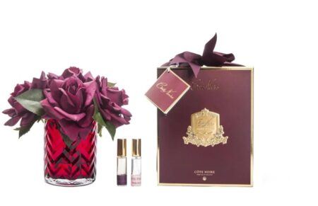 Prendendo ispirazione dalla vita nei villaggi di provincia, abbiamo creato una gamma di fragranze corpose che combinano i classici della pasticceria con frutti succulenti e fiori. Le fragranze della gamma Cote Noire prendono ispirazione dall’idilliaca campagna della Charente e ogni profumo cerca di catturare un ritratto della vita tradizionale francese. Le fragranze comprendono i classici della pasticceria, tè fragranti, frutti succulenti e fiori seducenti. I fiori sono stati abilmente lavorati a mano e utilizzano uno speciale rivestimento naturale per dare ad ogni petalo un tocco e un aspetto simile alla vita. Ogni petalo è stato infuso con una fragranza gradevole e la composizione include uno spray al profumo di petali di rosa all’interno della scatola.